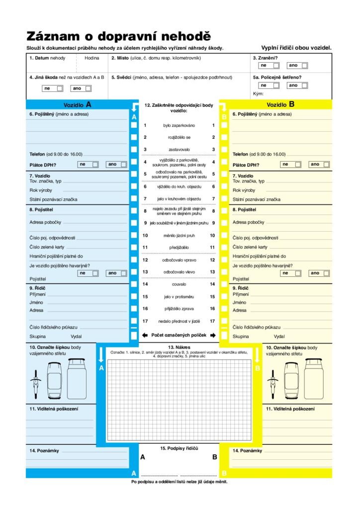 Evropský záznam o dopravní nehodě vám pomůže správně a rychle zaznamenat průběh nehody. Správně vyplněný formulář je klíčový pro bezproblémové řešení pojistné události.