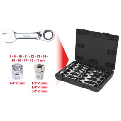 - Název: KS TOOLS Sada ráčnových plochých klíčů s očkem a adaptéry GEARplus 8-19 mm (krátké) - 12dílná | 503.4653
