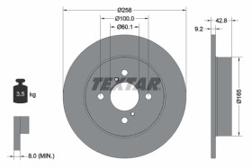 Počet děr ráfku kola : 4 -díra Výška ( v mm ) : 42,8 mm Hmotnost [kg] : 3,6 kg typ brzdového kotouče : plný síla brzdového kotouče v mm : 9,2 mm Vnější průměr [mm] : 258 mm Kruhový vyvrt ? 2 [mm] : 100 mm povrch : nátěr průměr náboje [mm] : 165 mm
