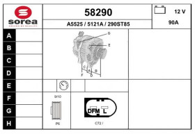 Napětí [V] : 12 V generátor-nabíjecí proud [A] : 90 A Hmotnost [kg] : 5,68 kg Počet žeber : 6 řemenice - ? [mm] : 55,8 mm řemenice : s řemenicí