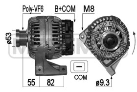 Napětí [V] : 14 V generátor-nabíjecí proud [A] : 140 A Provedení zástrčky-ID : B+COM řemenice - ? [mm] : 53 mm řemenice : s volnoběžnou řemenicí Směr otáčení : směr otáčení ve smyslu otáčení hodinových ručiček Počet upevňovacích otvorů : 2 Počet drážek : 6 Vzdálenost mezi řemenicí a generátorem [mm] : 55 mm více informací